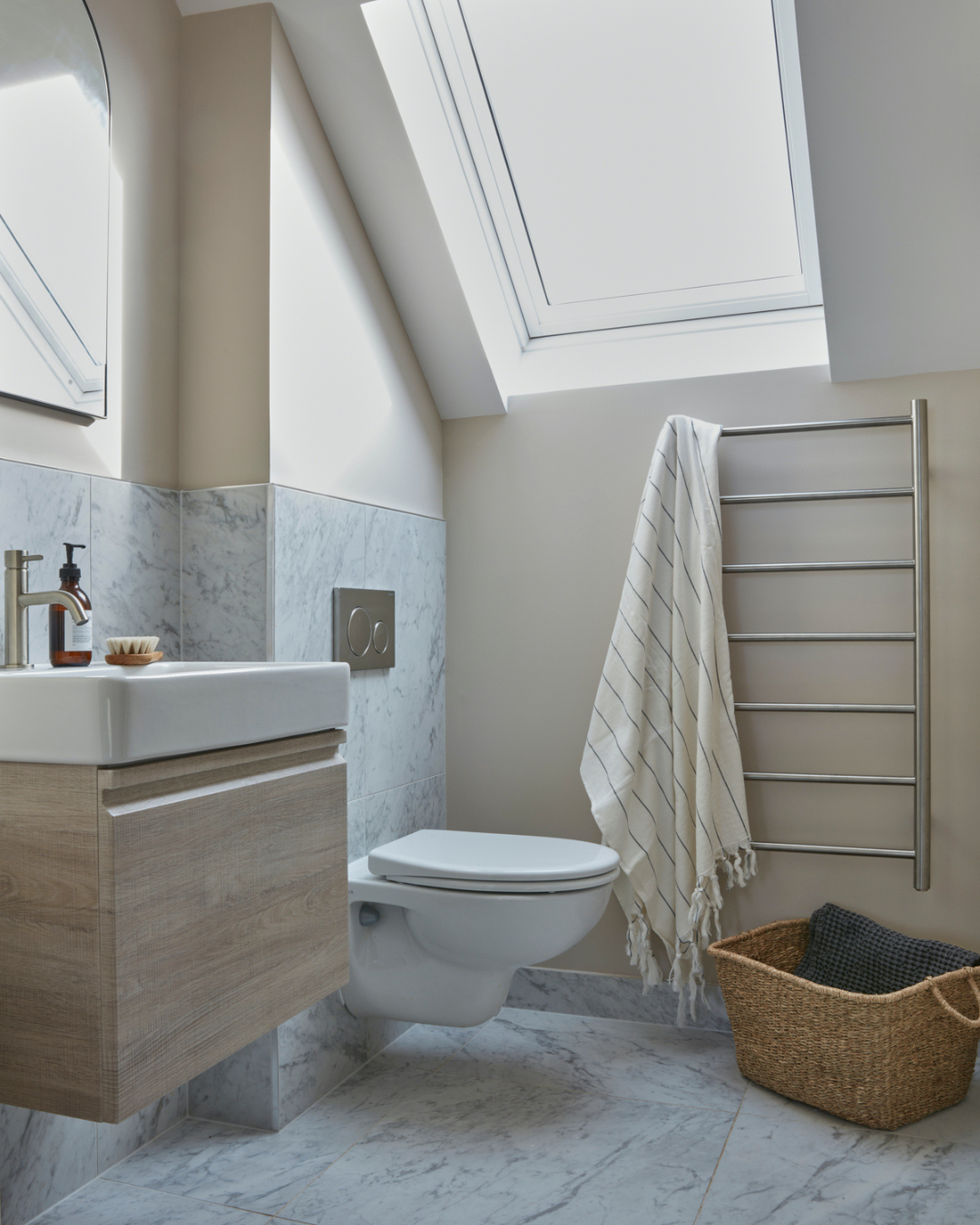 Shower Room: Thermostatic shower, heated towel rail, basin & w.c.