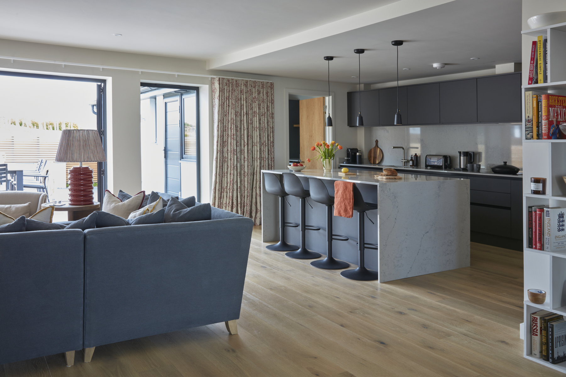 Downstairs the living areas flow seamlessly with the spacious and contemporary combined kitchen, dining and living area all with underfloor heating throughout.