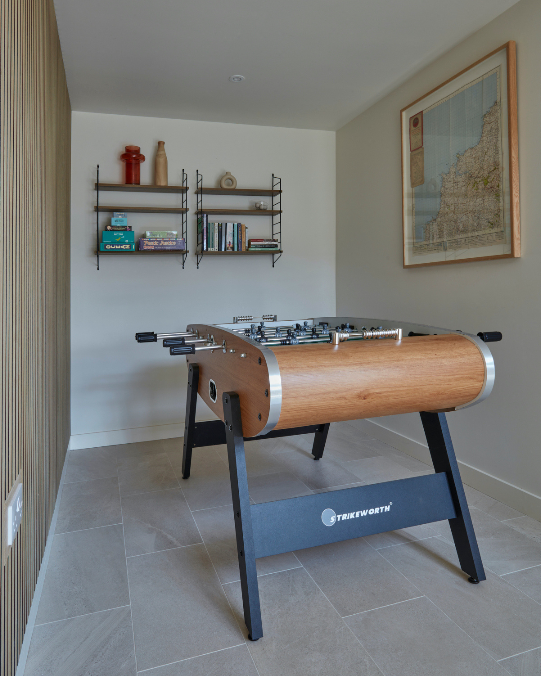 The snug downstairs features a table football table along with plenty of other boardgames to keep all the family entertained.