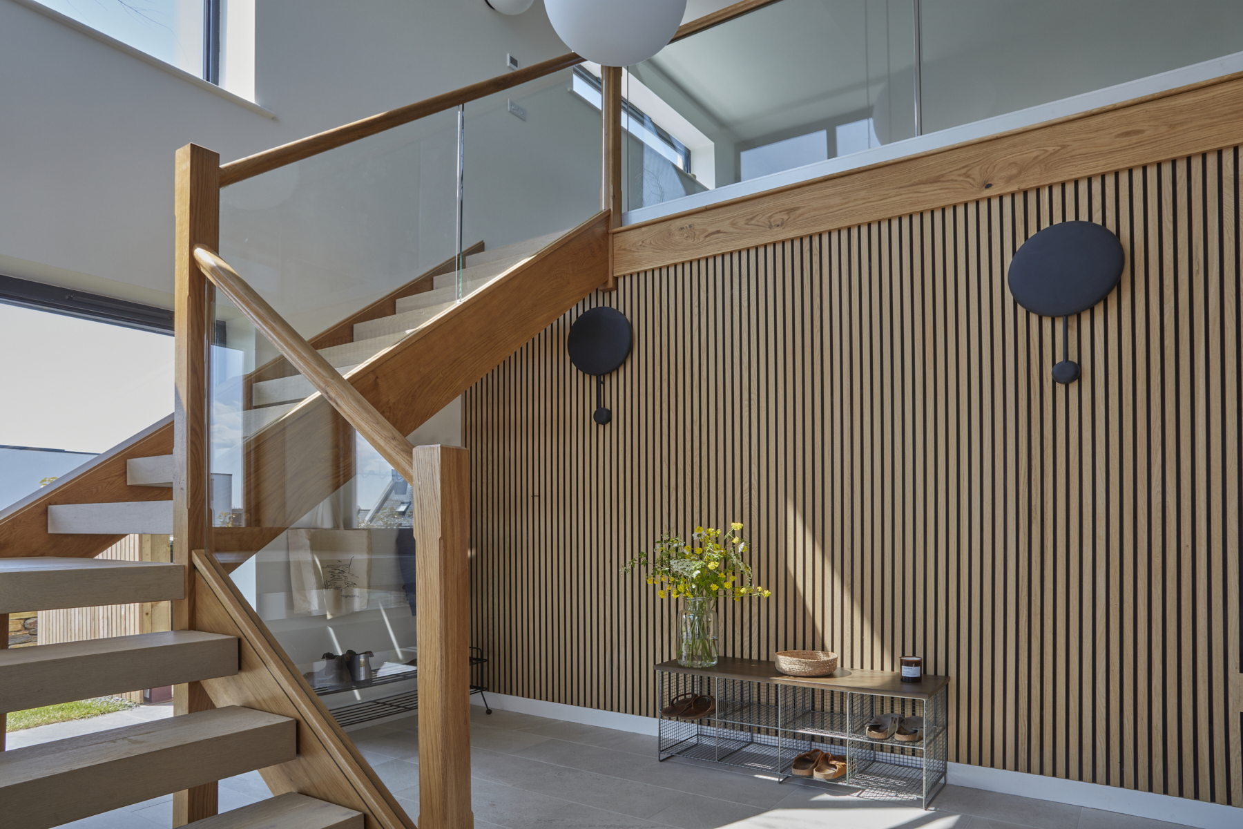 This magnificent property is designed to maximise the impressive far reaching views across the Camel Estuary and Stepper Point. From the moment you step into Borlowen, there is a sense of calm. Soft tumbled tiles, paired with natural wood and off-whites create a beautiful double height entrance, with an oak open staircase leading up to the main living area on the first floor.