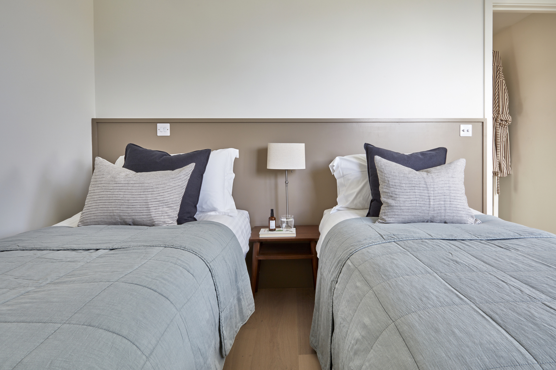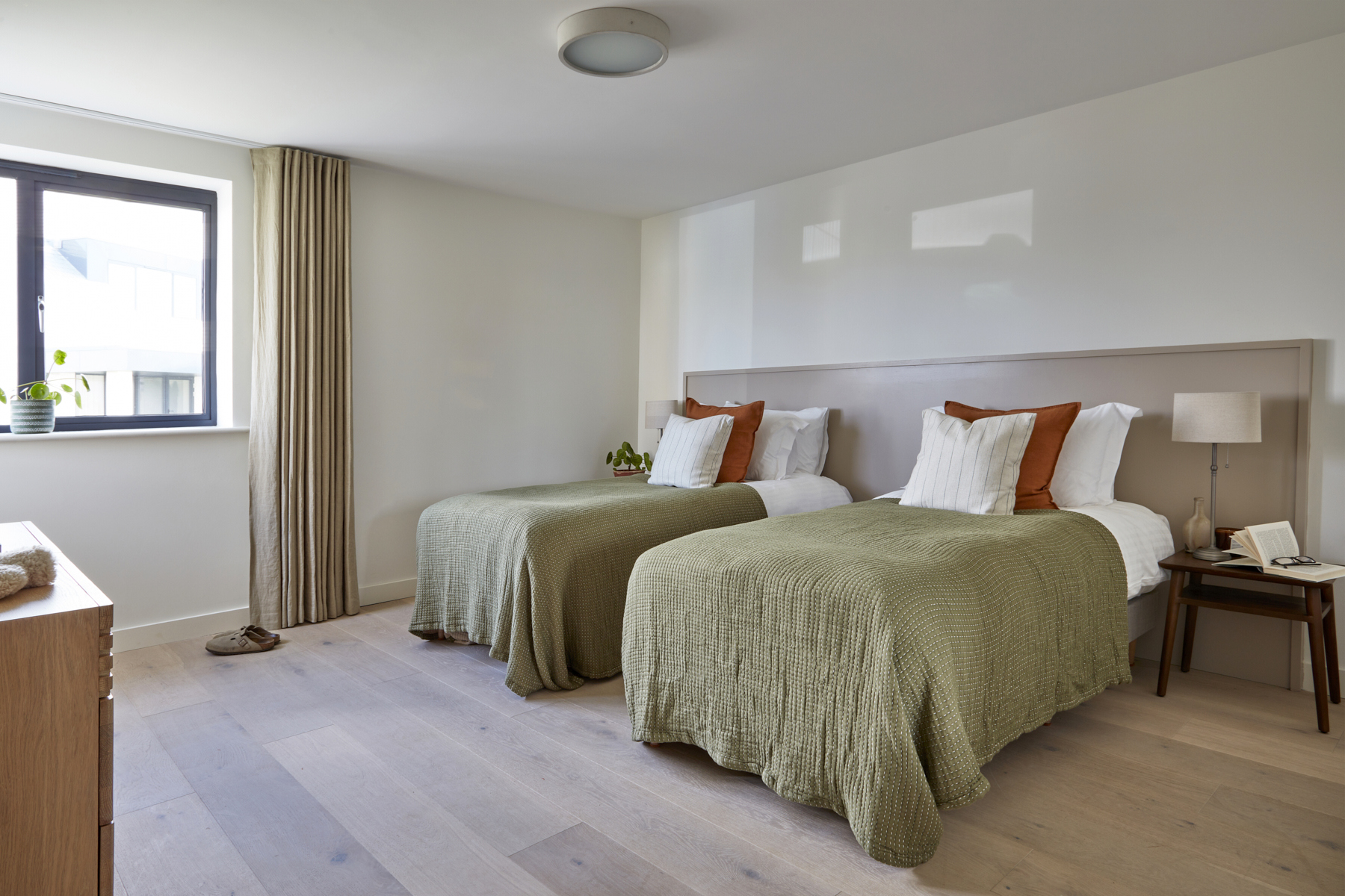 Bedroom 4: Twin beds, chest of drawers (can be zipped & linked to form 6' super-king, please request in advance).