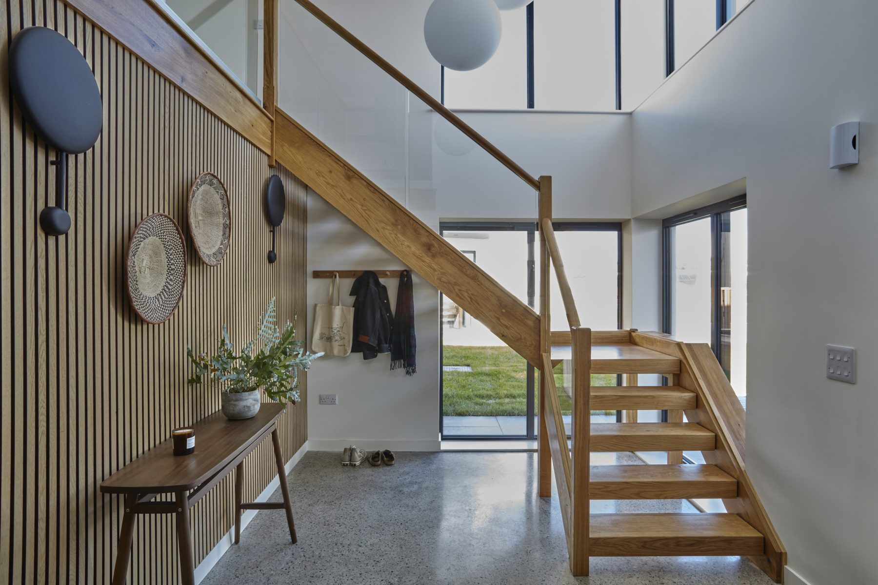 This magnificent property is designed to maximise the impressive far reaching views across the Camel Estuary and Stepper Point. As you enter into the house, you are greeted by polished concrete floors, a double height entrance and a beautiful hand made oak open staircase, which lead up to the main living area on the first floor.
