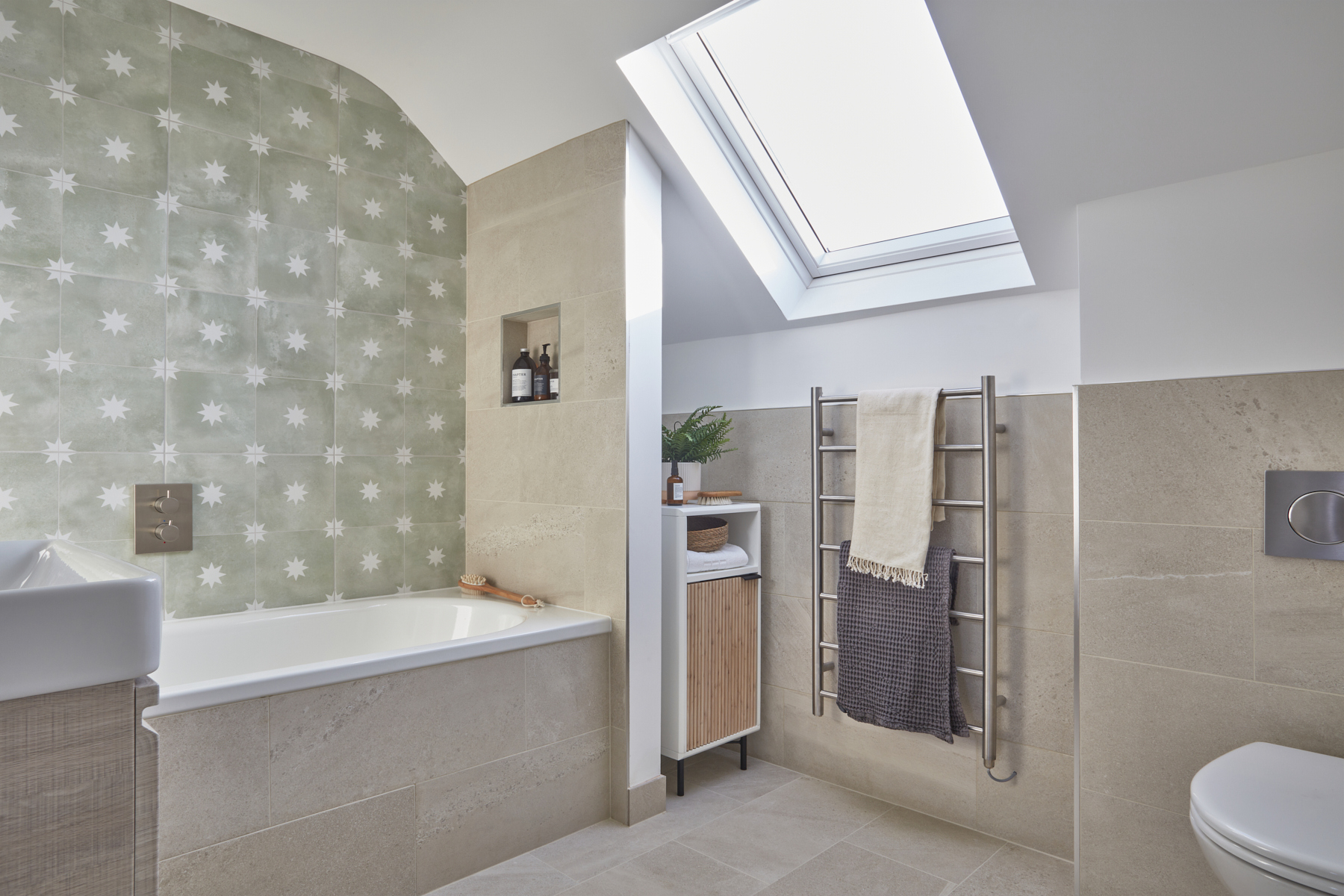 Family Bathroom: Bath, heated towel rail, basin & w.c.
