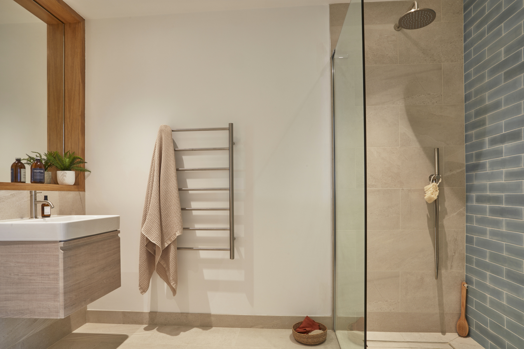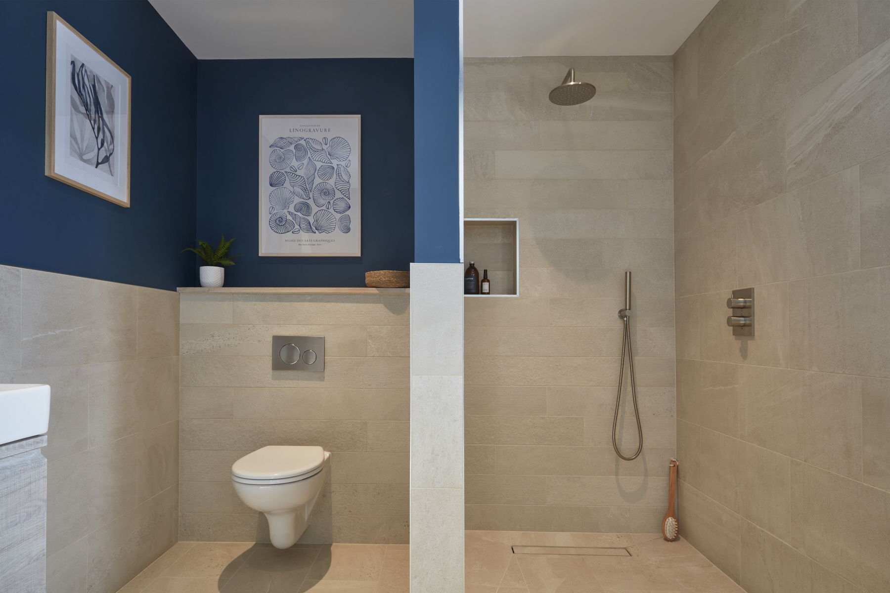 Wet Room: Thermostatic shower with drench and hand-held shower, heated towel rail, basin & w.c.