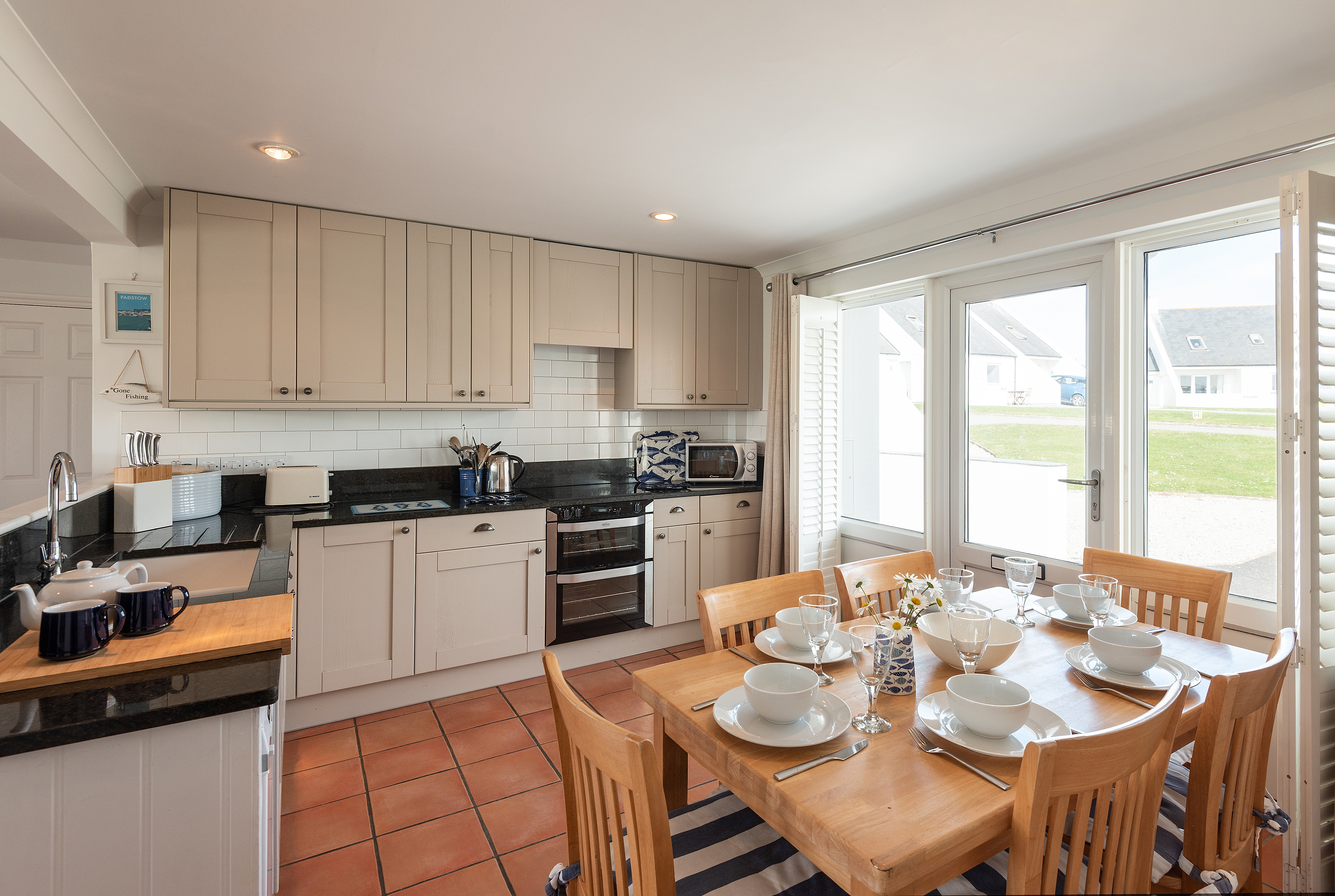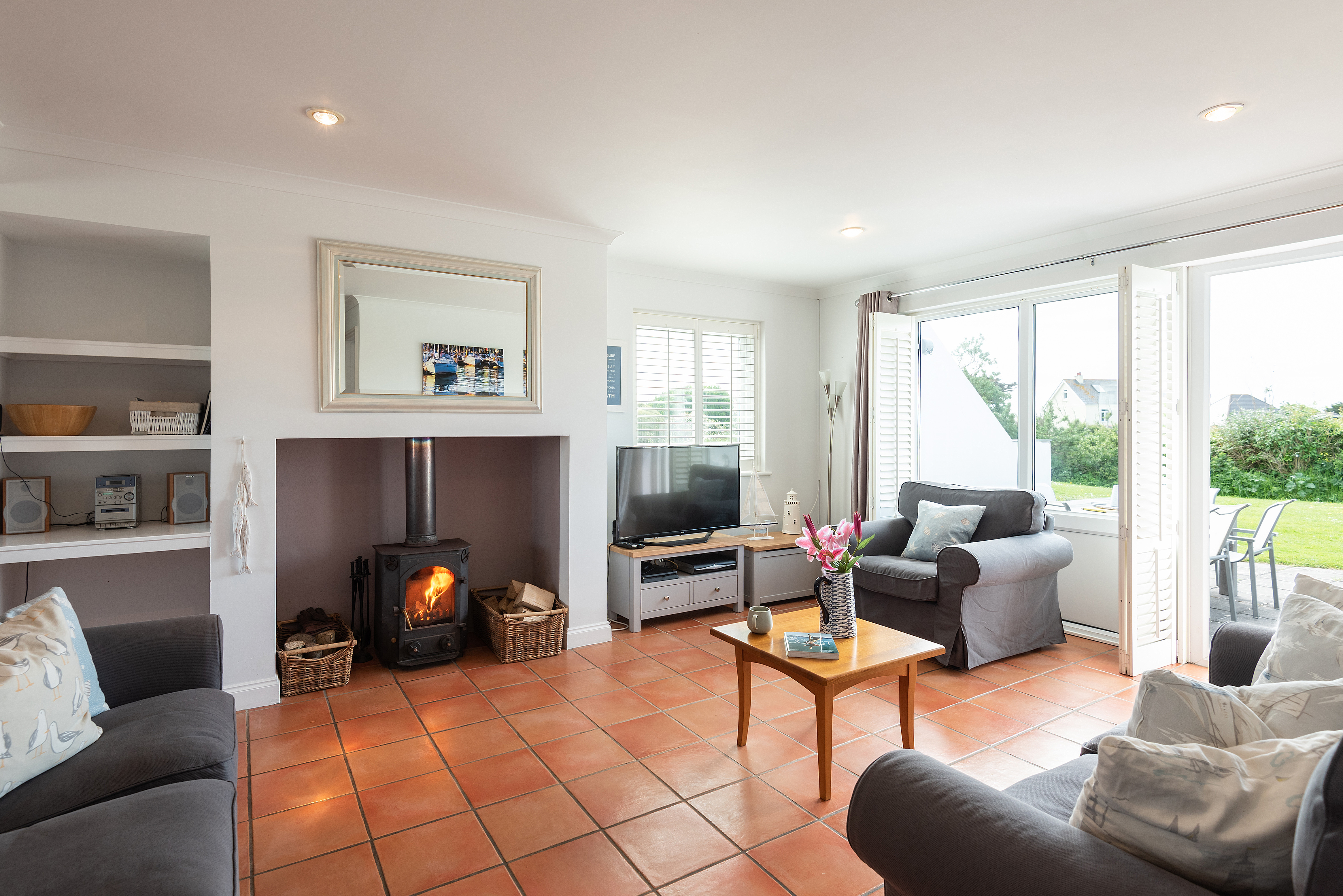 Inside, the open-plan living area is light and spacious, featuring a log burner to keep you cosy during the cooler months. The contemporary kitchen is ideal for those who love to cook and entertain while on holiday.
