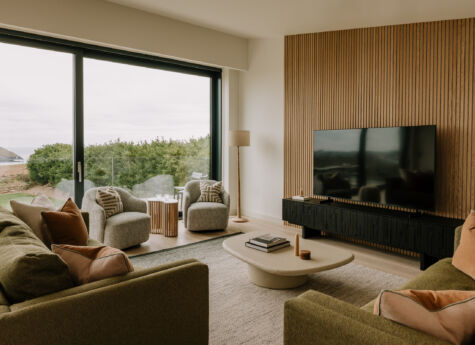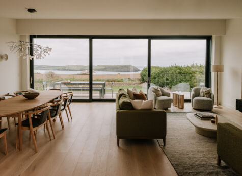 Teg Alargh, translating to “beautiful swan,” is a contemporary coastal retreat with sweeping sea views across to Stepper Point.