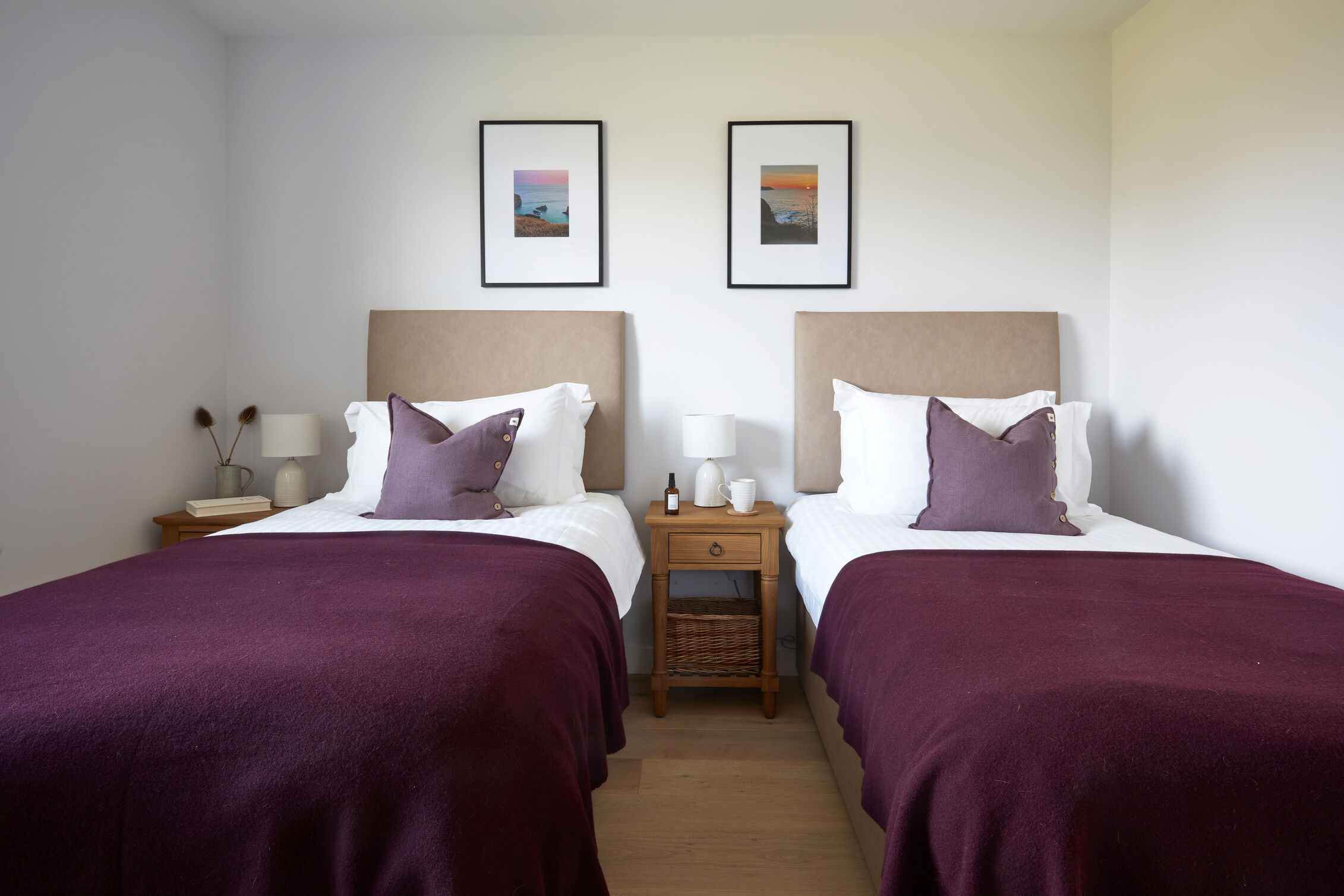 Bedroom 1: Twin beds (3’), (zip & link beds which can form 6’ super-king, please request in advance), wardrobe, bedside tables.
