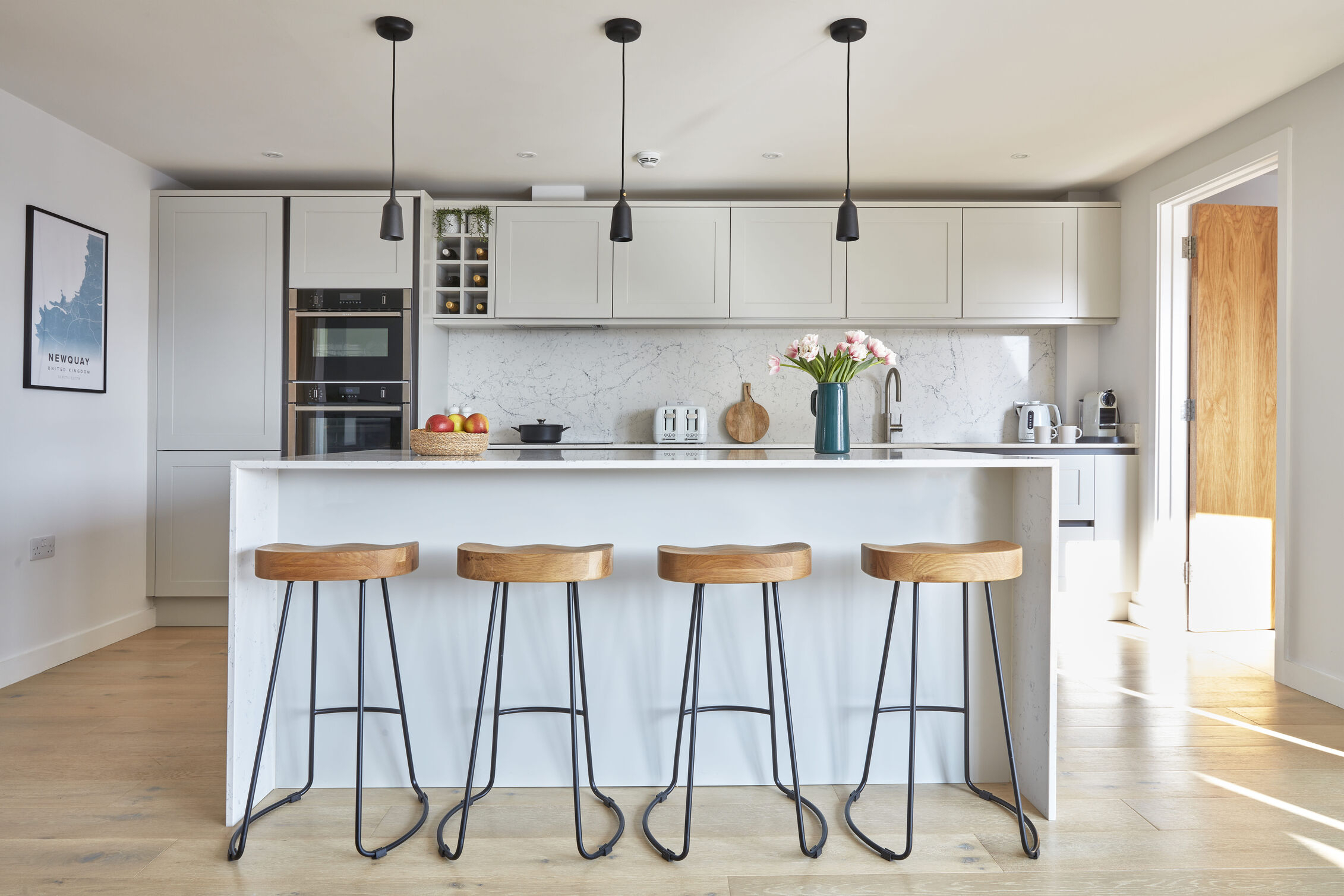 Kitchen: Kitchen Island & breakfast bar. Double electric Neff oven with a combination microwave, Nespresso coffee machine (original/classic pods), fridge/freezer, dishwasher. Starter pack including oven gloves, tea towels, dishwasher tablets & cloths supplied.