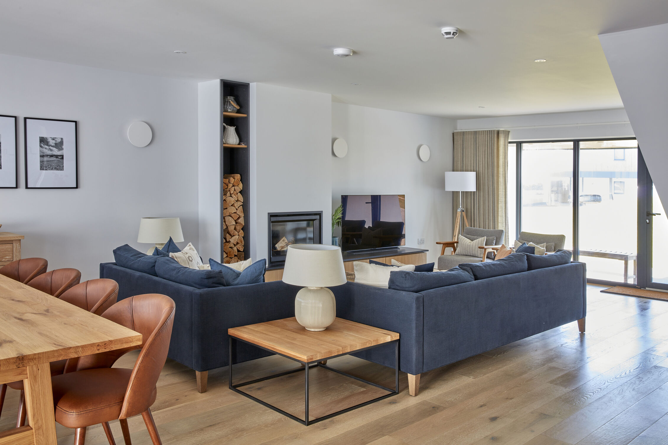 Sitting & Dining area: Smart T.V., BT full fibre broadband, inset log burner, dining table & chairs, sofa & armchairs, bi-fold doors opening on to a spacious private terrace.