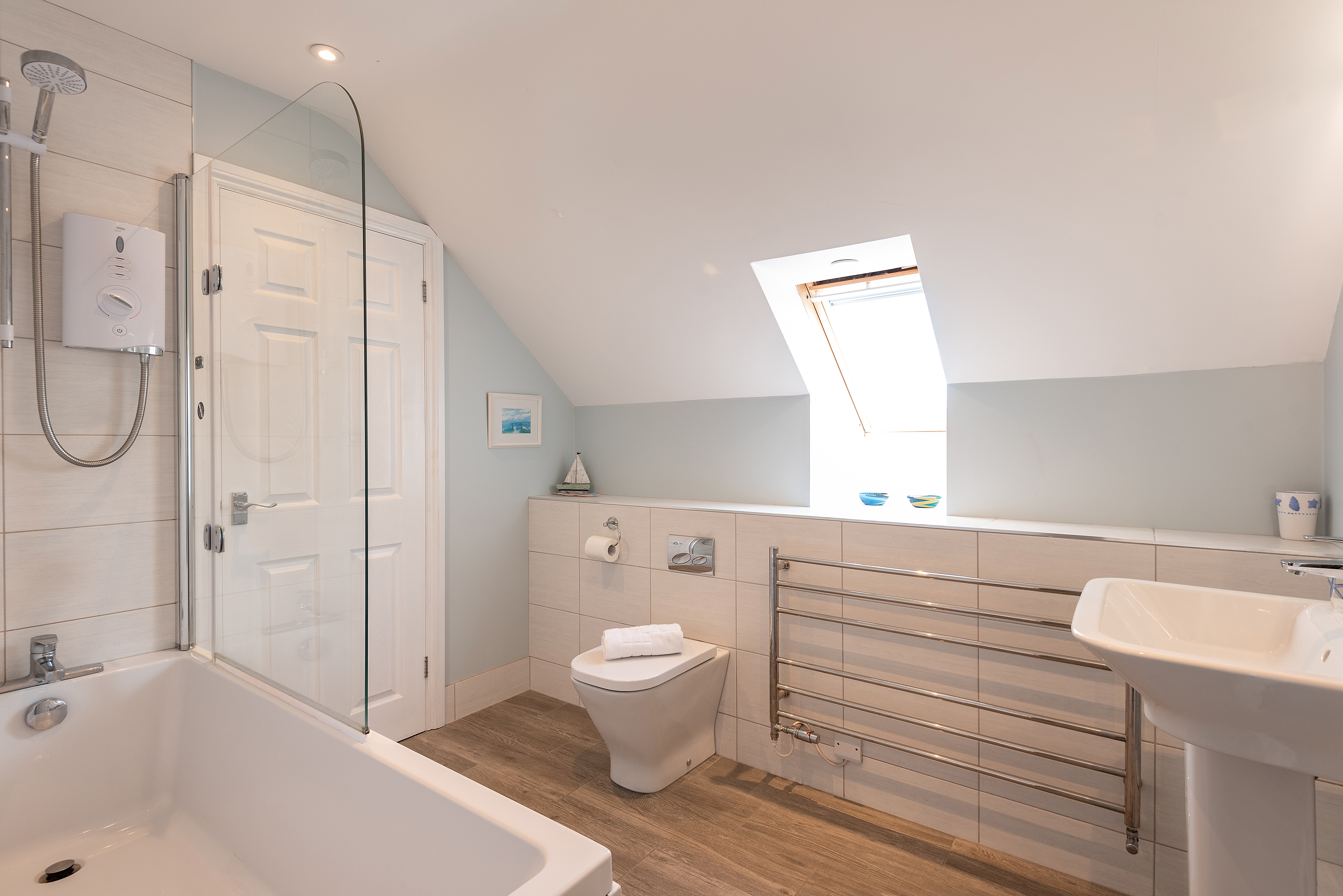 Family Bathroom: Bath with electric shower over, heated towel rail, w.c.