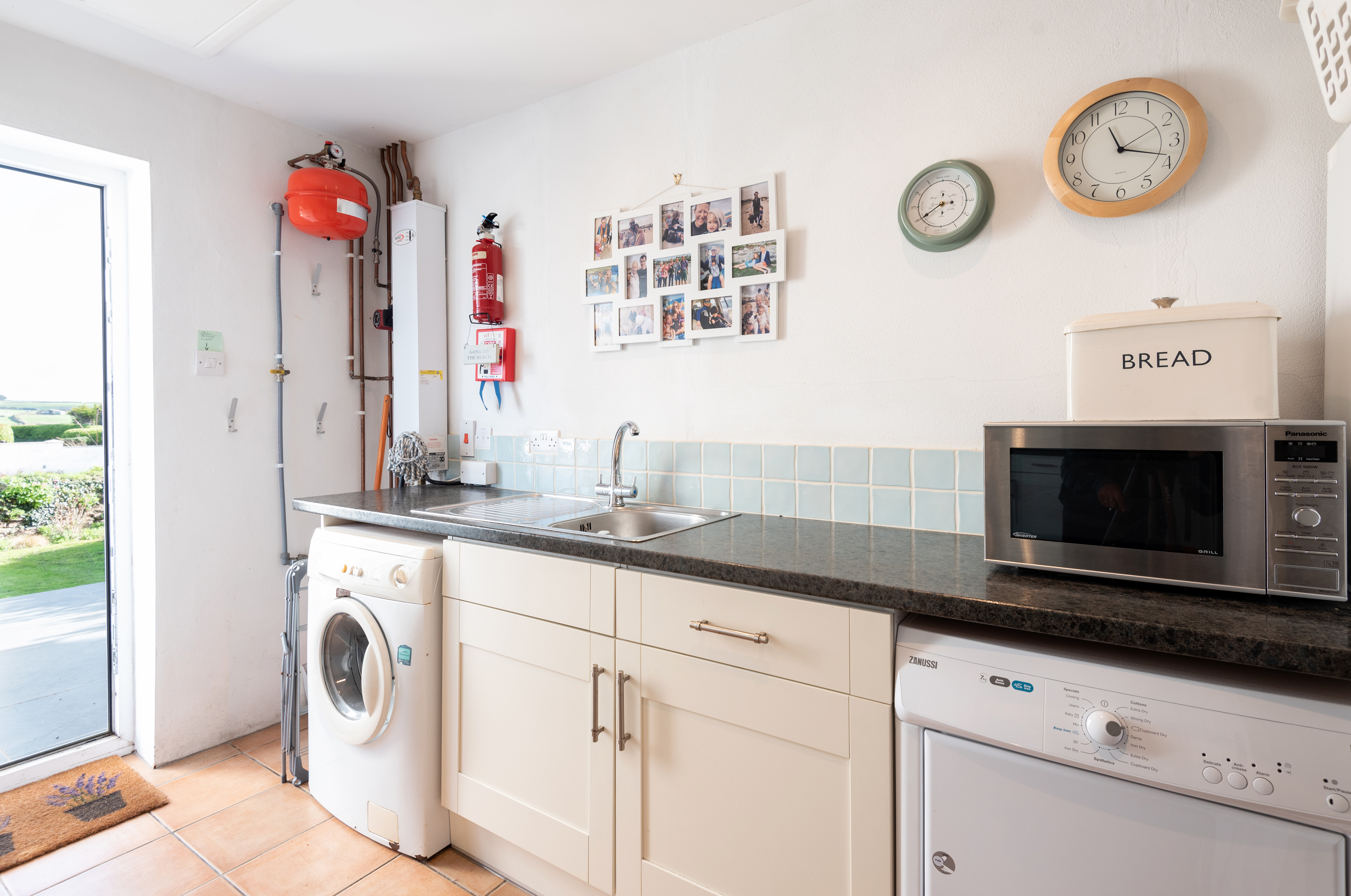 Utility Room: Washing machine, tumble drier, fridge/freezer, microwave, basin, ironing facilities.