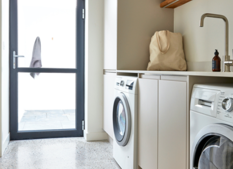 The open plan kitchen and living area are the heart of this home. Muted tones of the soft grey...