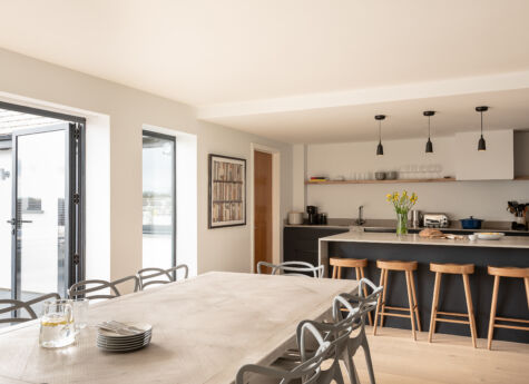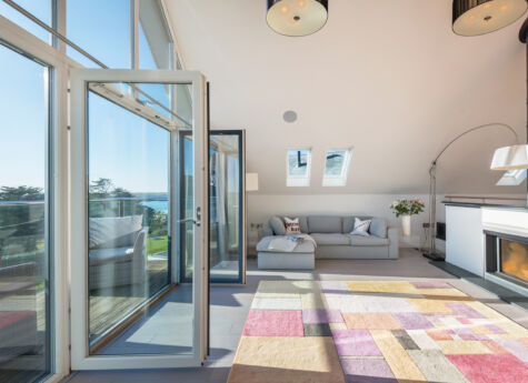 Anterre, an exquisite new house perched on Highcliffe’s most elevated position, offering unparalleled sea views across to Stepper Point and the Camel Estuary.