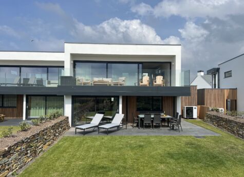 We are extremely excited to share Belanu, a spectacular new house in one of the most elevated positions at Highcliffe, with panoramic views out to Stepper Point and across the Camel Estuary.