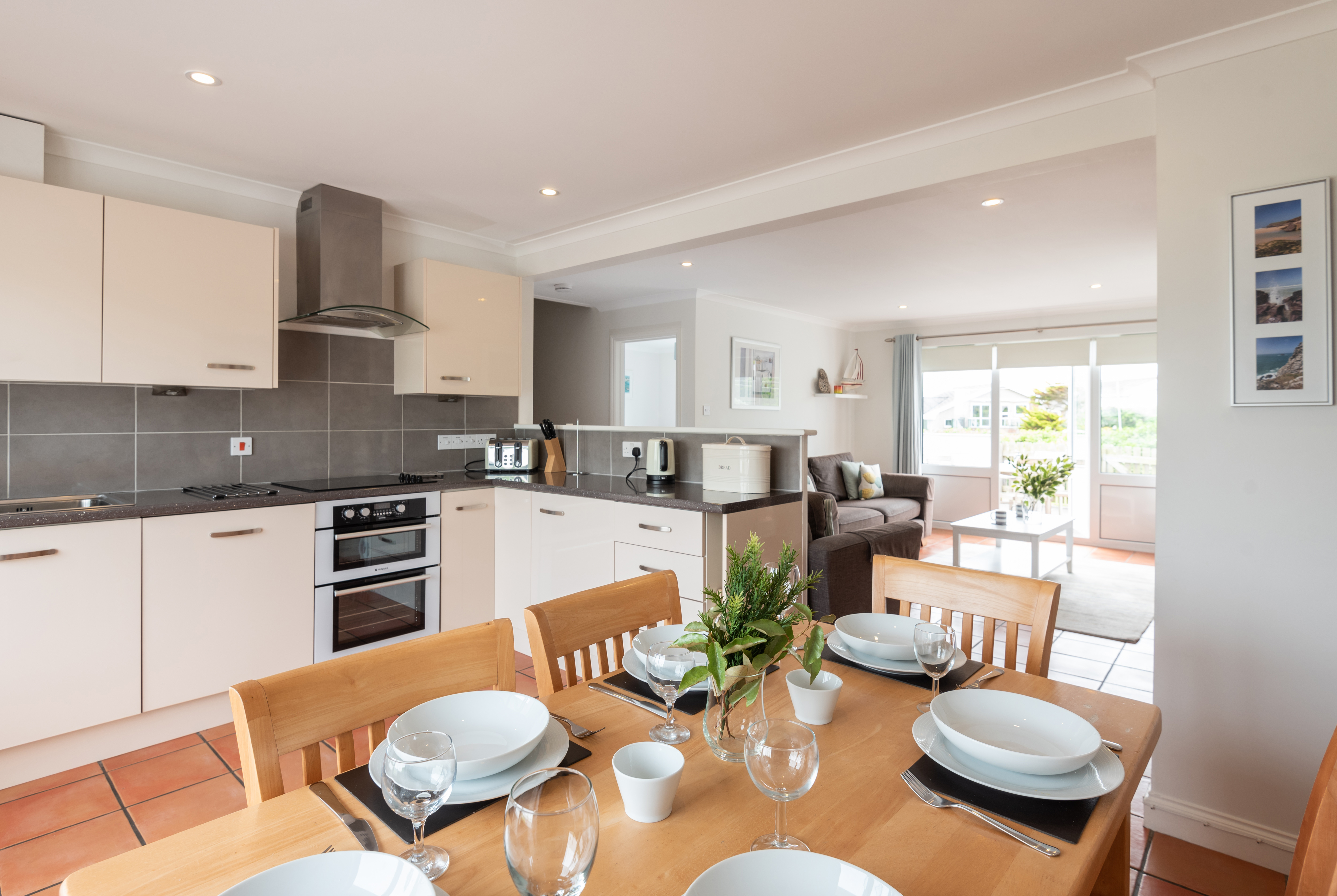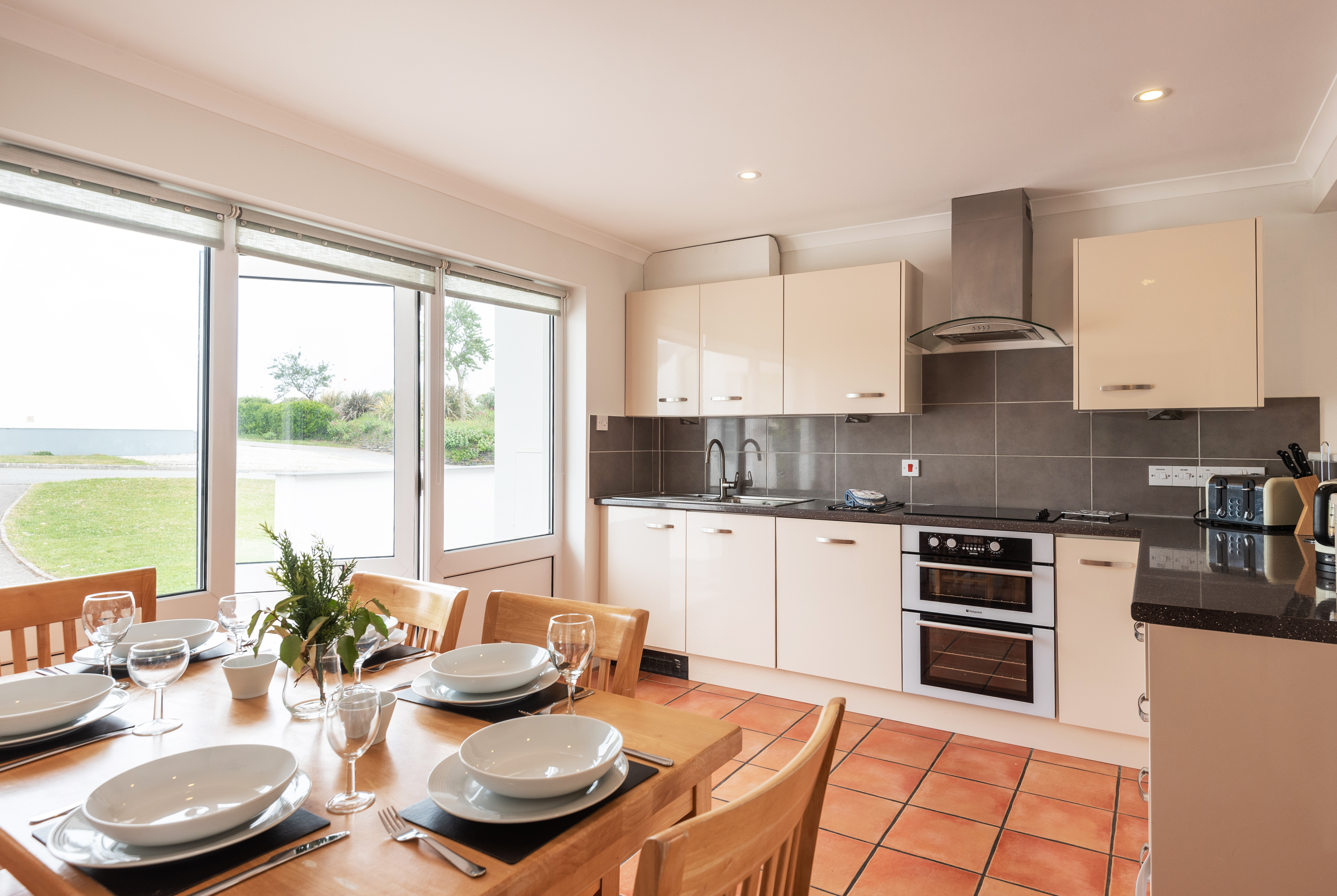 Kitchen & Dining Room: ceramic hob, electric oven, fridge, dishwasher. Starter pack including oven gloves, tea towels, dishwasher tablets and cloths supplied.