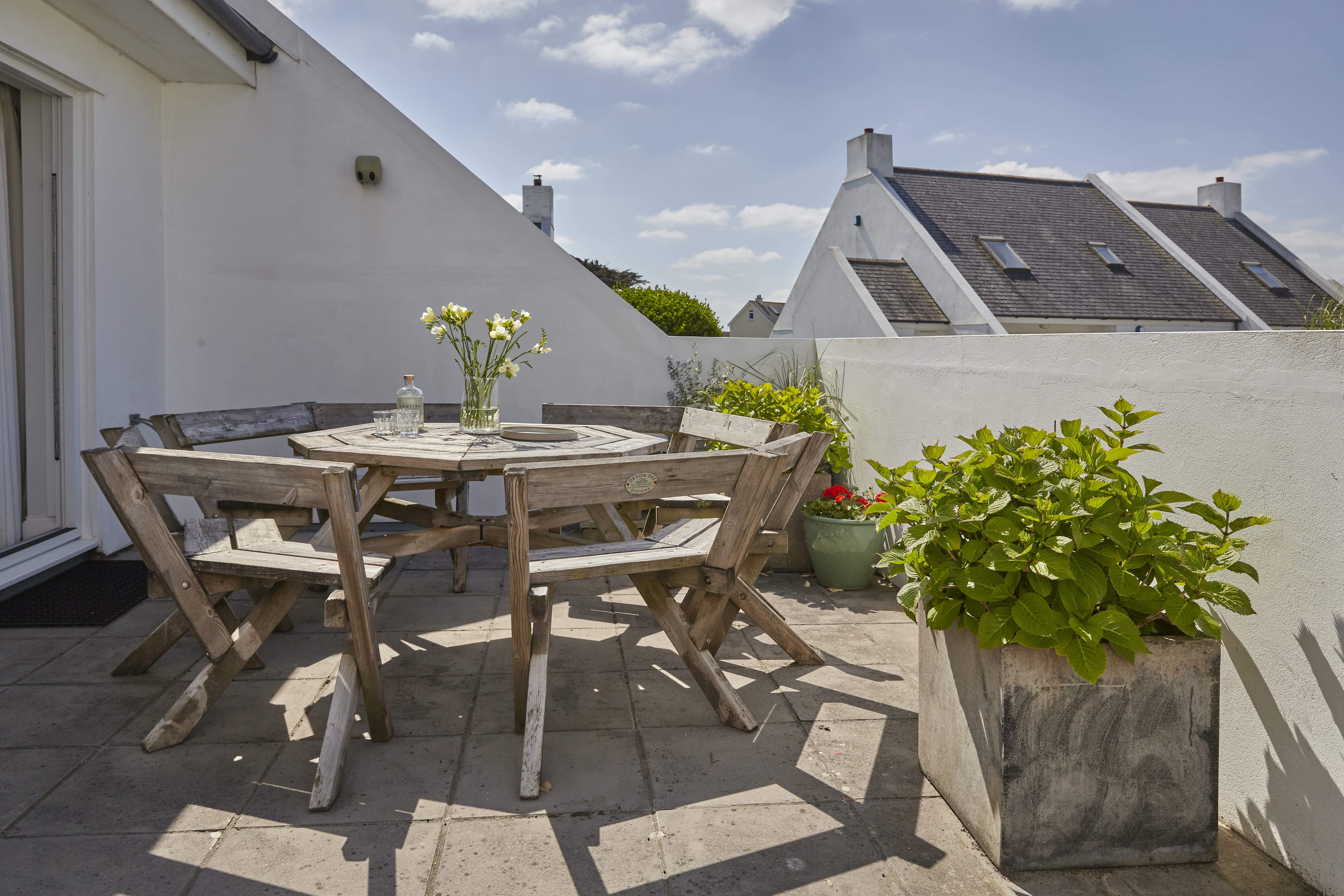 The generous south-facing patio is bathed in sunlight throughout the day and into the evening, providing the ideal setting for al fresco dining and evening barbecues. There is a secure fence to provide peace of mind for guests with young children and dogs too.