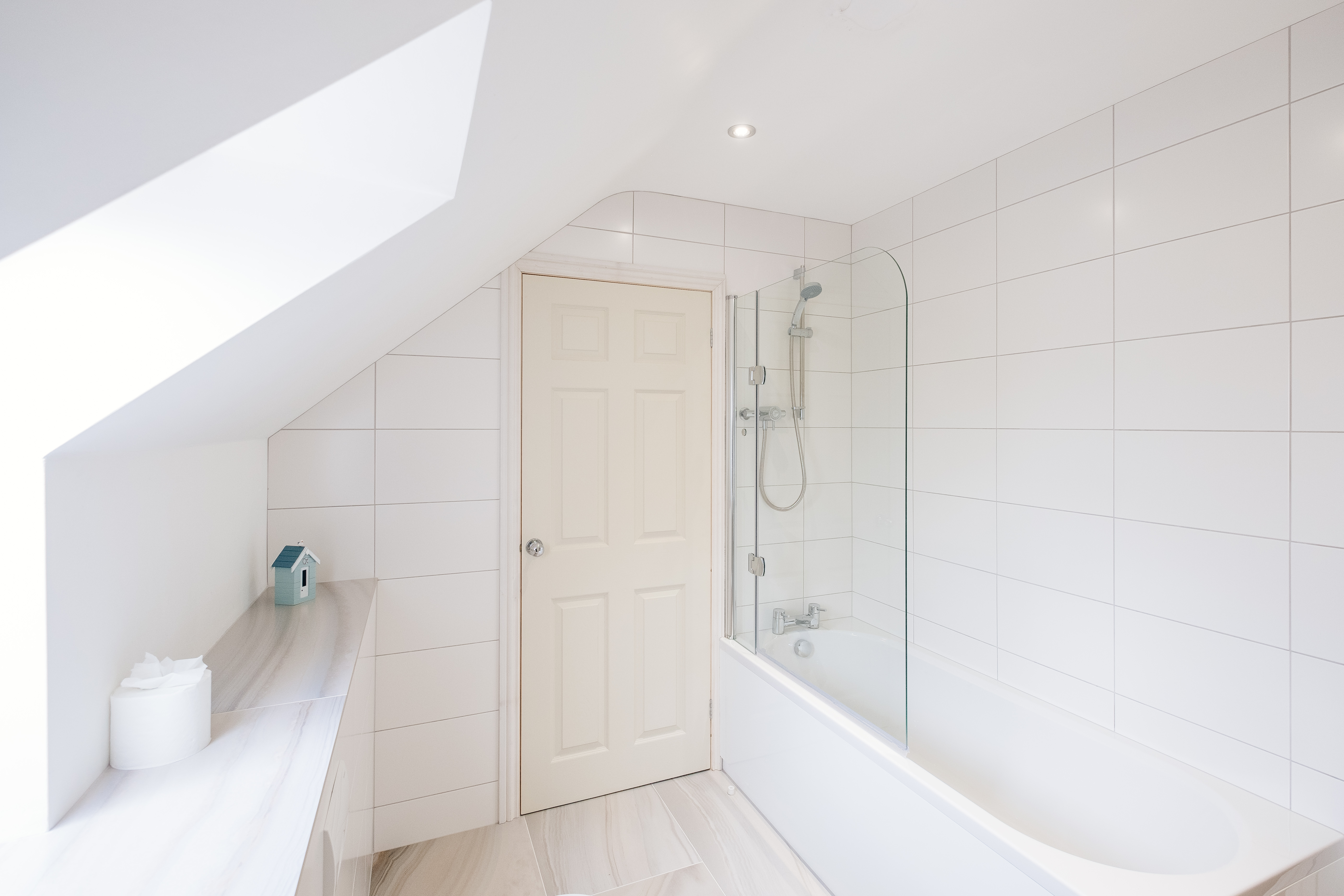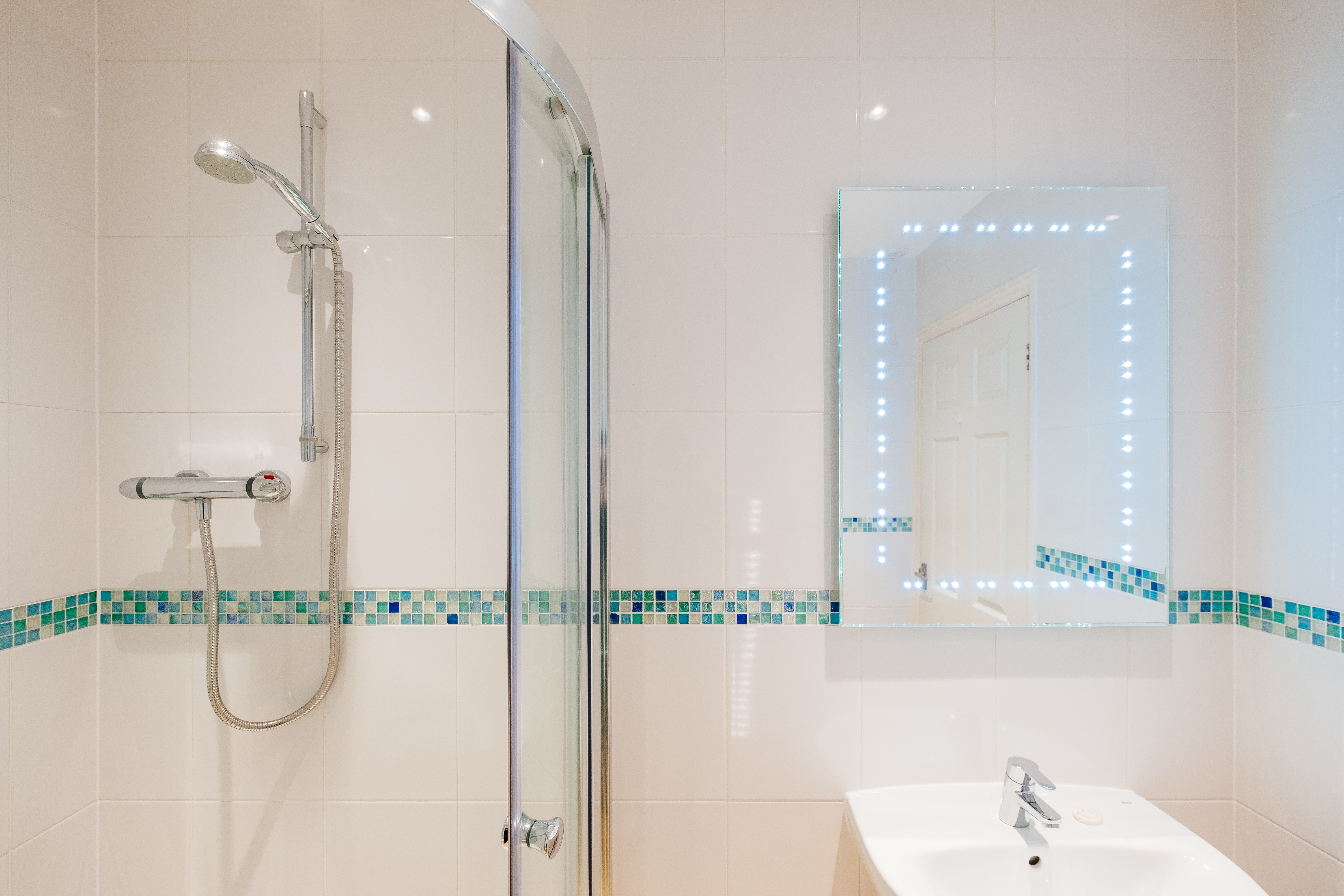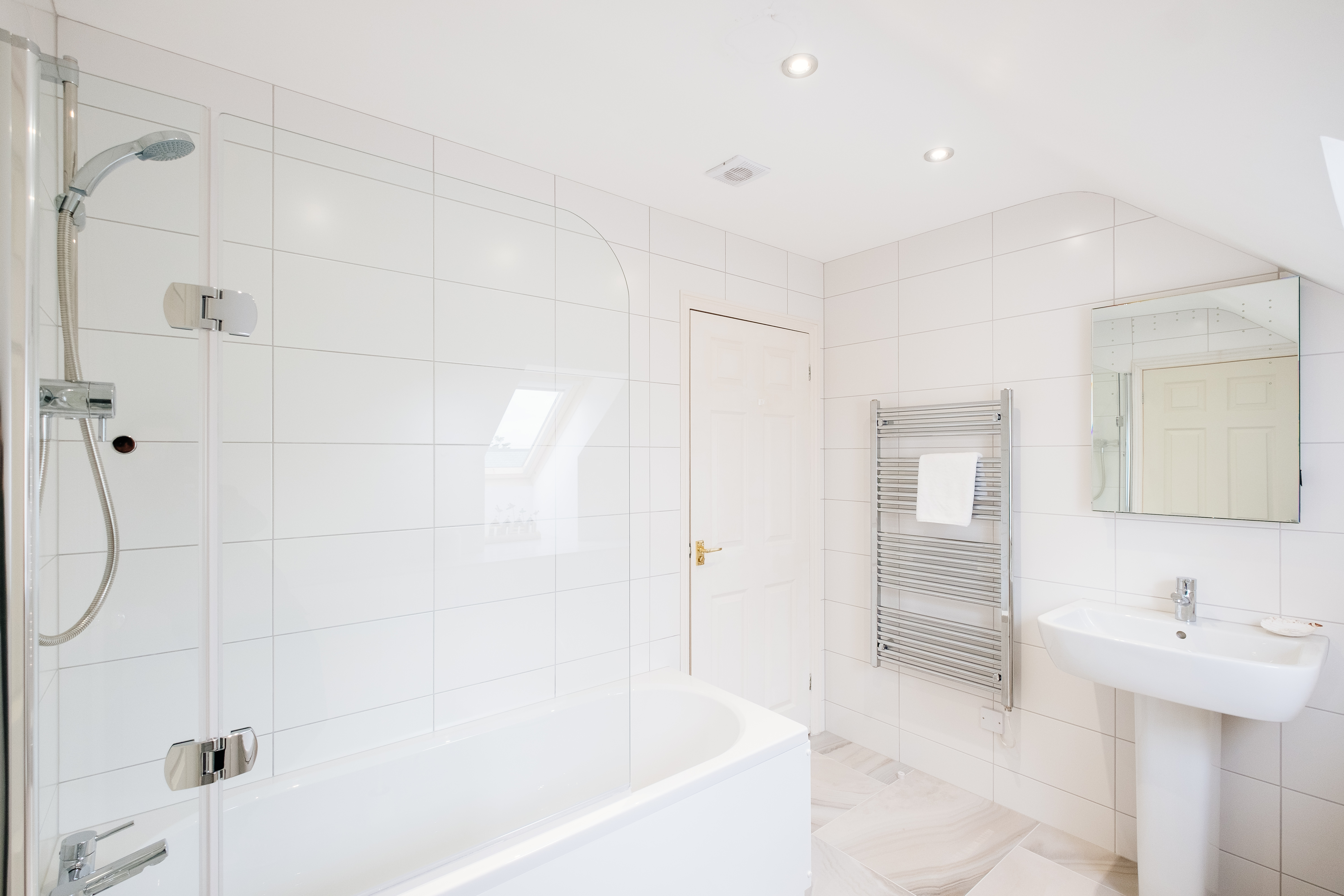Family Bathroom: Bath with thermostatic shower over, heated towel rail, w.c.